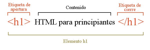 La estructura de una etiqueta HTML consiste en un nombre encerrado entre los signos menor y mayor < >, que indica al navegador qué tipo de elemento se está creando. La mayoría de las etiquetas tienen una etiqueta de apertura